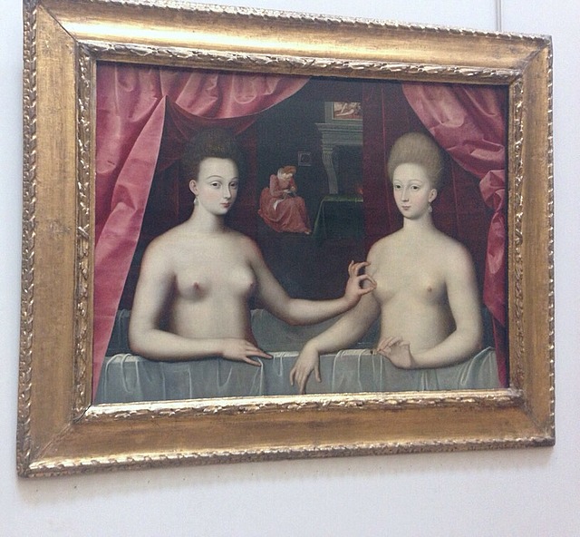 Today we finished off the attractions we wanted to see, starting with The Louvre. I’m not a huge art person (except for in relation to musical eras, ie Impressionism (Monet, Renoir), and the music reflected this with blurred/slurred music (as opposed to sharp, accented notes) ie Debussy – The Girl with the Flaxen Hair, being my favourite. It was all very interesting though! As suspected, the Mona Lisa didn’t wow me at all, I think there are much more interesting pieces thoughout the Louvre, but man she attracts a crowd. Gabrielle d’Estrees and Her Sister was particularly intriguing (this is the one of the sister pinching her nipple), and the story behind this is that she is sitting in the bath with her sister, holding the coronation ring of Henry IV, which he gave her not long before she died (she was his mistress).