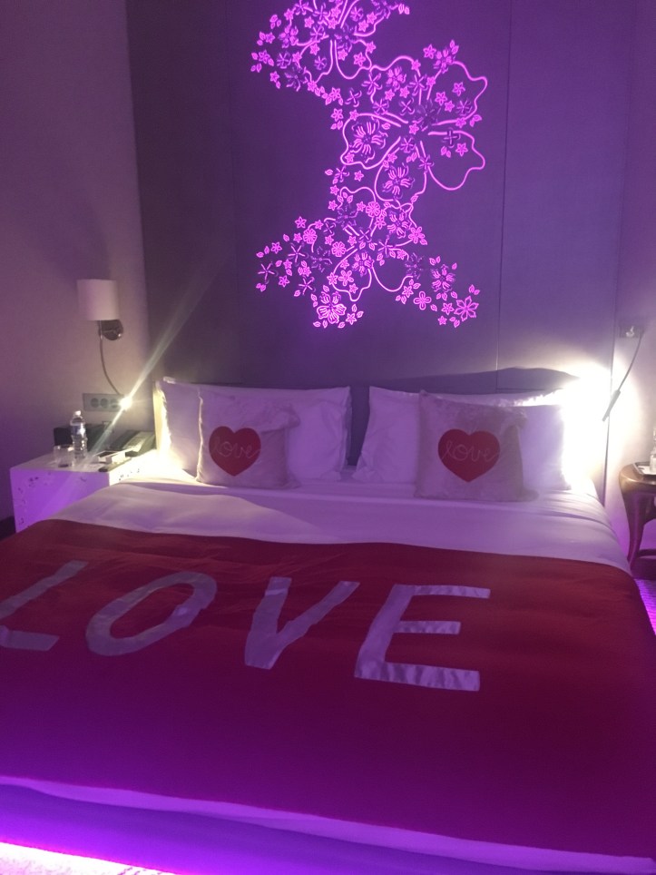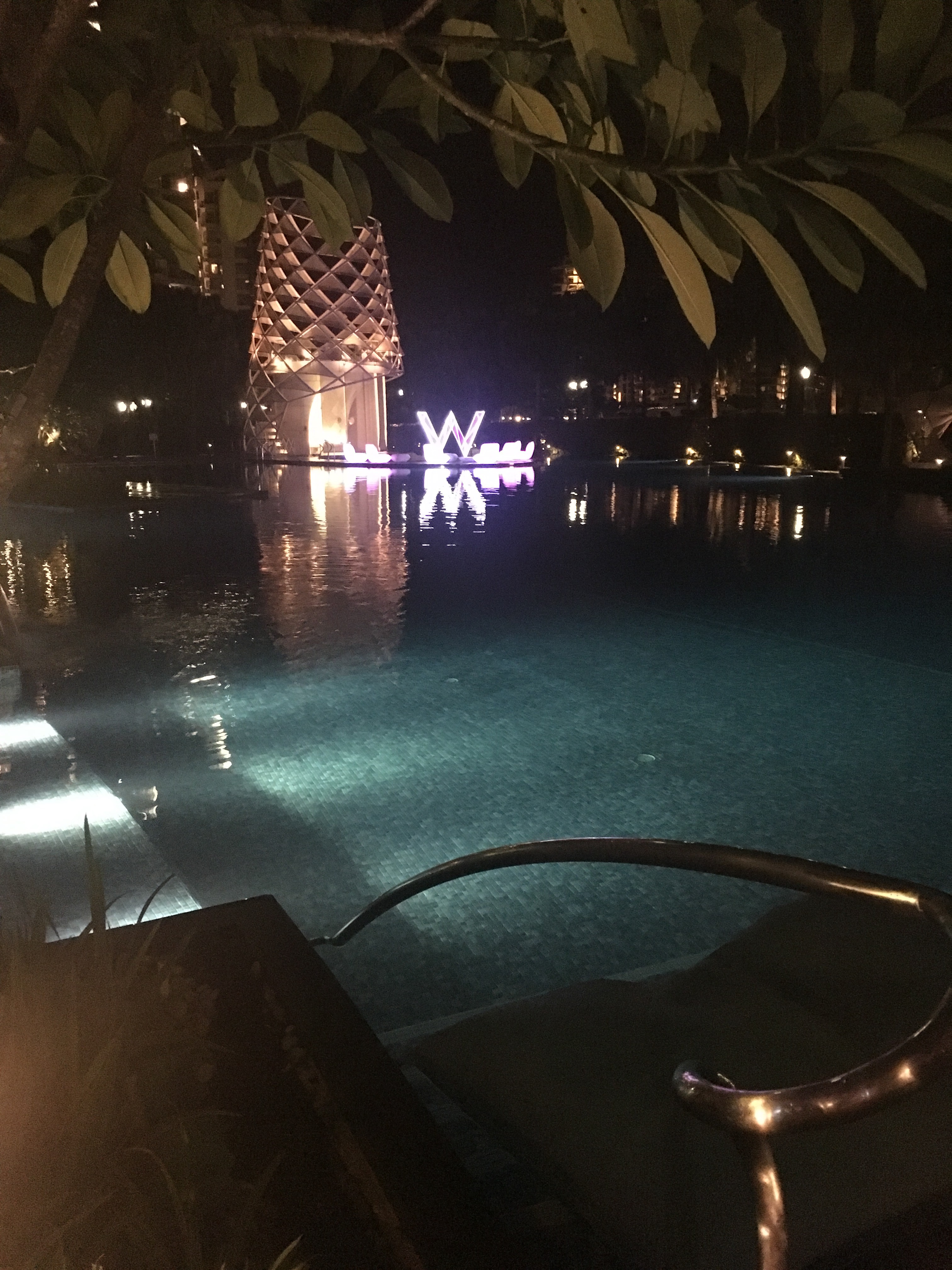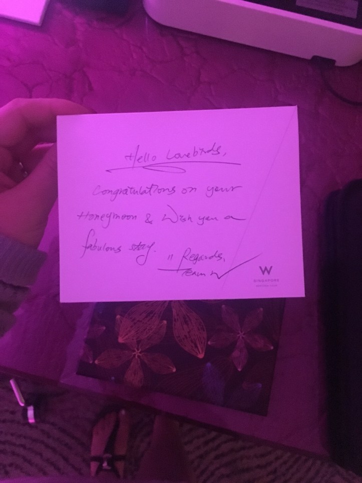 It was about 8.30pm by the time we got to our accommodation on Sentosa Island – it probably wasn’t the best location for what we were wanting to do at this part of our trip, but I just LOVE the W Hotels… if you’ve ever stayed at one, I’m sure you feel the same way. They are so funky! We arrived and they had decorated our room with LOVE decor, and left us a box of chocolates, and then when we came back from having a swim in the awesome pool (who doesn’t love a swim up bar?), they had left us a cute box with a love-heart helium balloon attached, and a cake inside the box… nice touch. Craig ate the cake the next morning, with a pair of chop sticks, because we couldn’t find any forks or spoons.