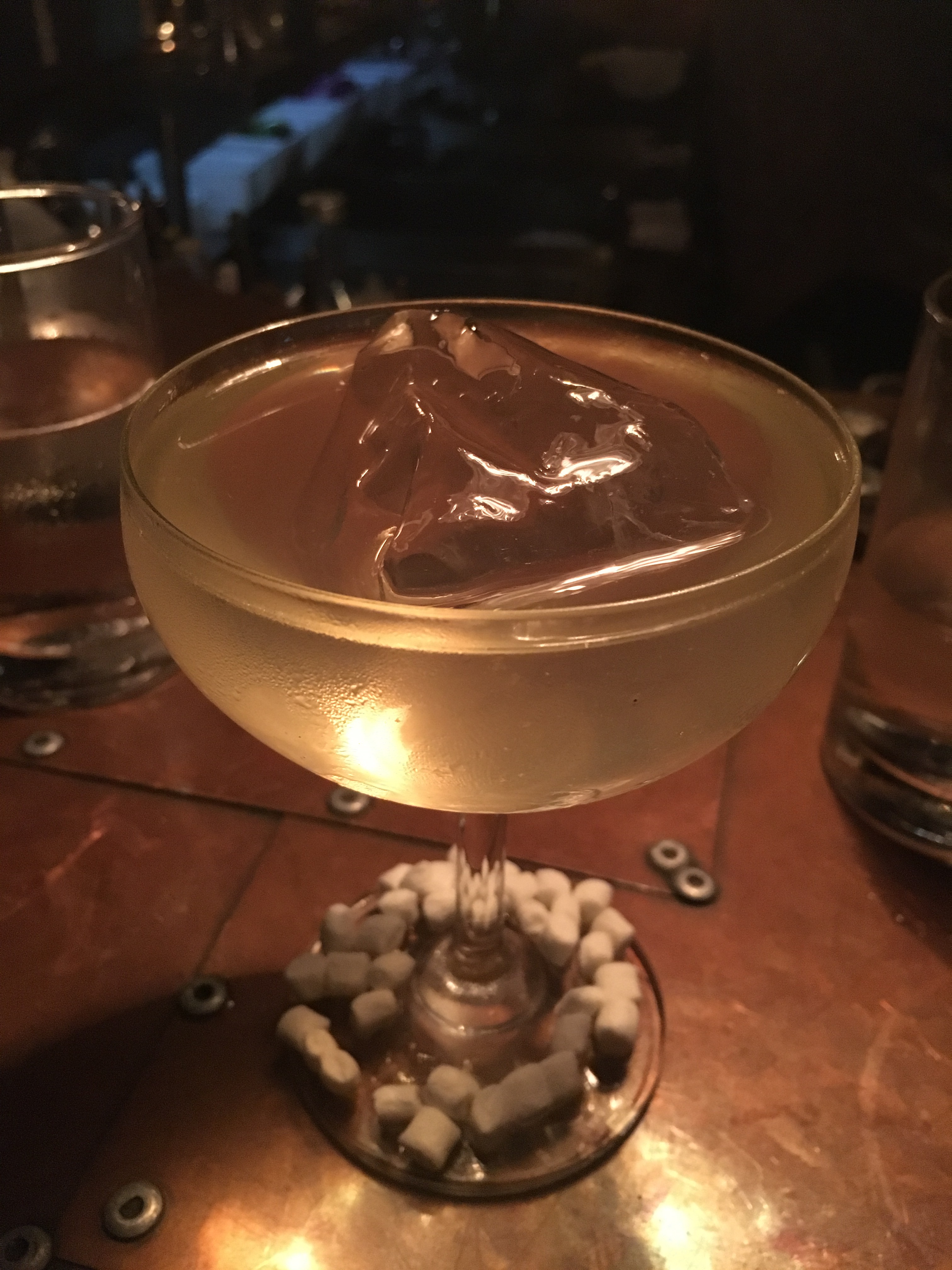 When we walked in, it was a funny little room pretending to sell teas, and the lady waiting in there was not giving anything away, as in she wasn’t even going to ask us if we needed help… hilariously mysterious. Once Craig recited the password, we were allowed trough the mirror door, which uses a switch behind the book case, and suddenly you’re in the dimly-lit bar. They’ve tried the keep the music reminiscent of the times of prohibition, and it made me think of that episode of the Simpsons when Bart and Homer are making home brew and putting it into Bowling Balls.