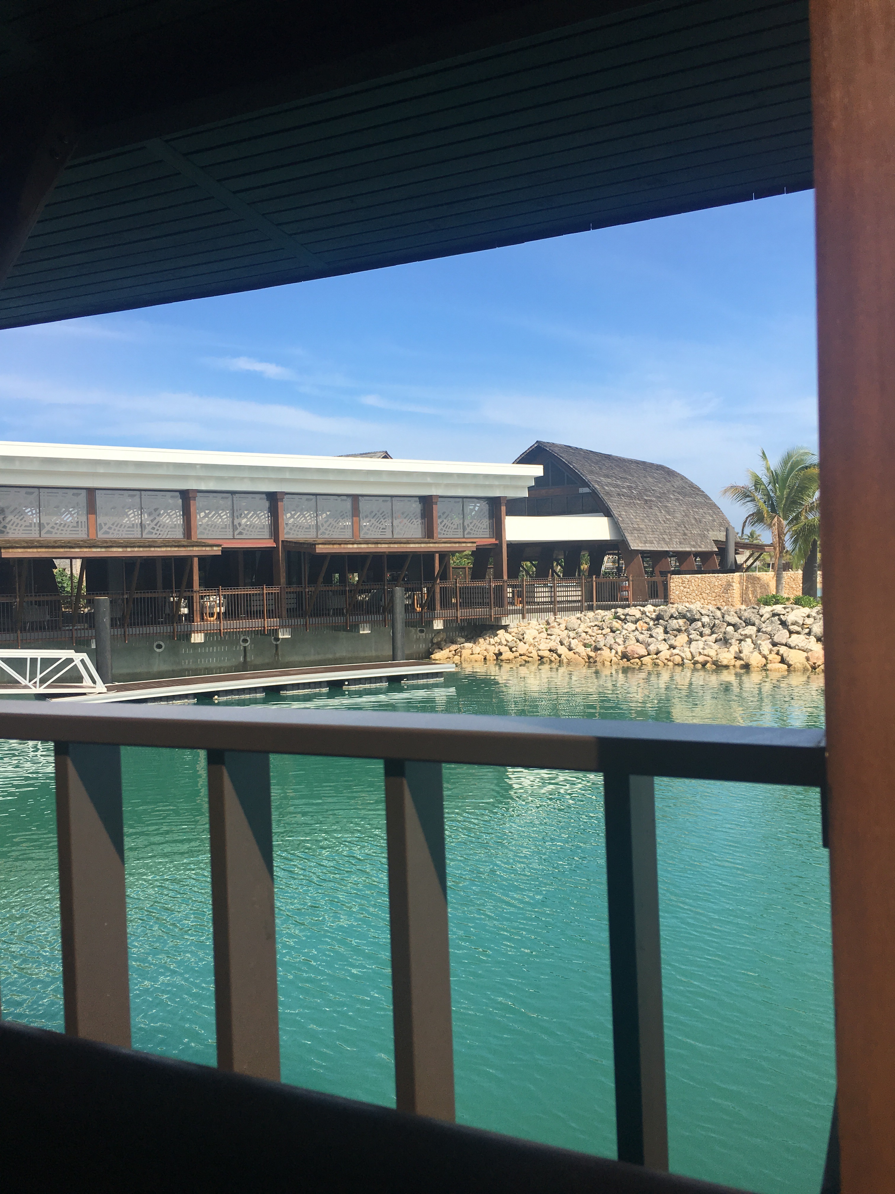 3pm came and went and we still hadn’t been taken to our bungalow, so we asked at the lobby. We think they made a mistake, but they did give us a couple of drink vouchers for the inconvenience, which was good. About 3.30pm we finally got access and WOW, talk about blown away… the rooms are stunning and immaculate (the resort has only been open since April, so that is to be expected) – extremely spacious, and well appointed, and I always get excited over a standalone bath! There are little glass viewing panels to look down into the water, which is a very cool touch. The best part though, is the deck – large enough for a circular cabana chair, and a table and chairs, with lots of space left – I know simplicity is sophistication, but I do feel like a sun lounger wouldn’t go astray.