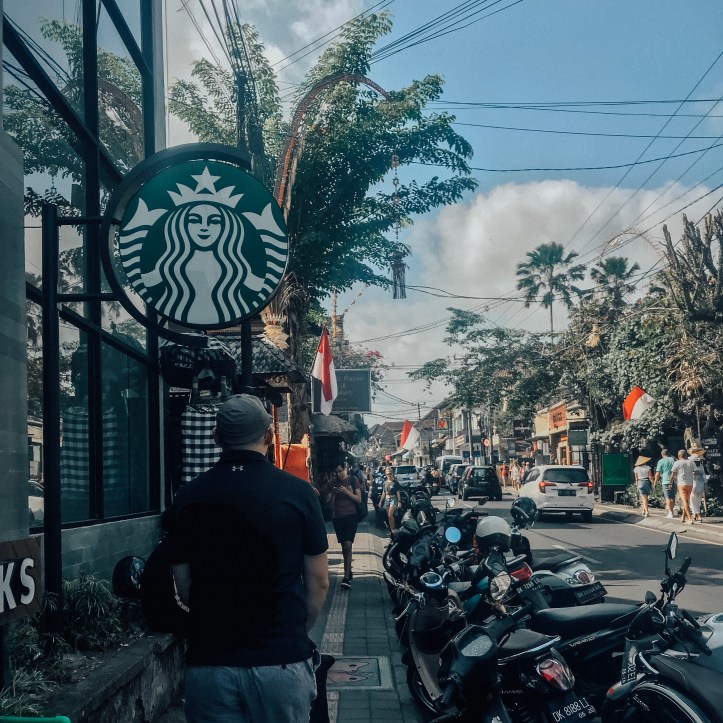 The resort has a free shuttle into Ubud several times a day, which is great because a) it’s a 40 minute drive, and b) online taxis (such as Uber) are banned in the Ubud area, which I guess is something to do with not taking business away from exisiting local taxis (fair enough… it’s not like they’re expensive anyway). So we jumped on the 12pm shuttle into Ubud – it was a packed 12 seater with not much air conditioning happening (which I thought odd for a resort vehicle) and it was a very slow (traffic) and bumpy ride into Ubud – super interesting scenery if the heat and constant acceleration and deceleration, and a weird high pitched beeping sound wasn’t making me feel car sick!