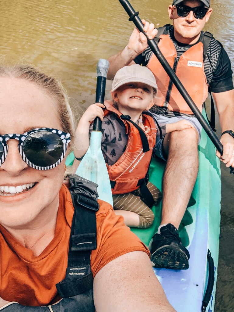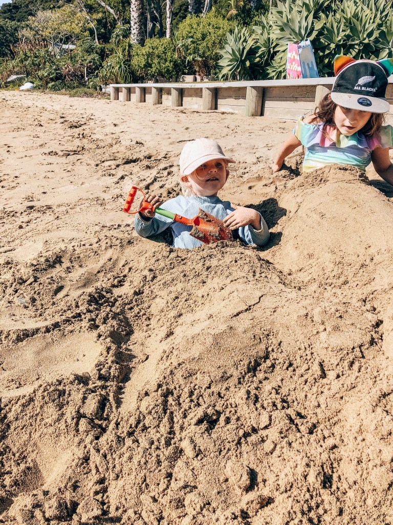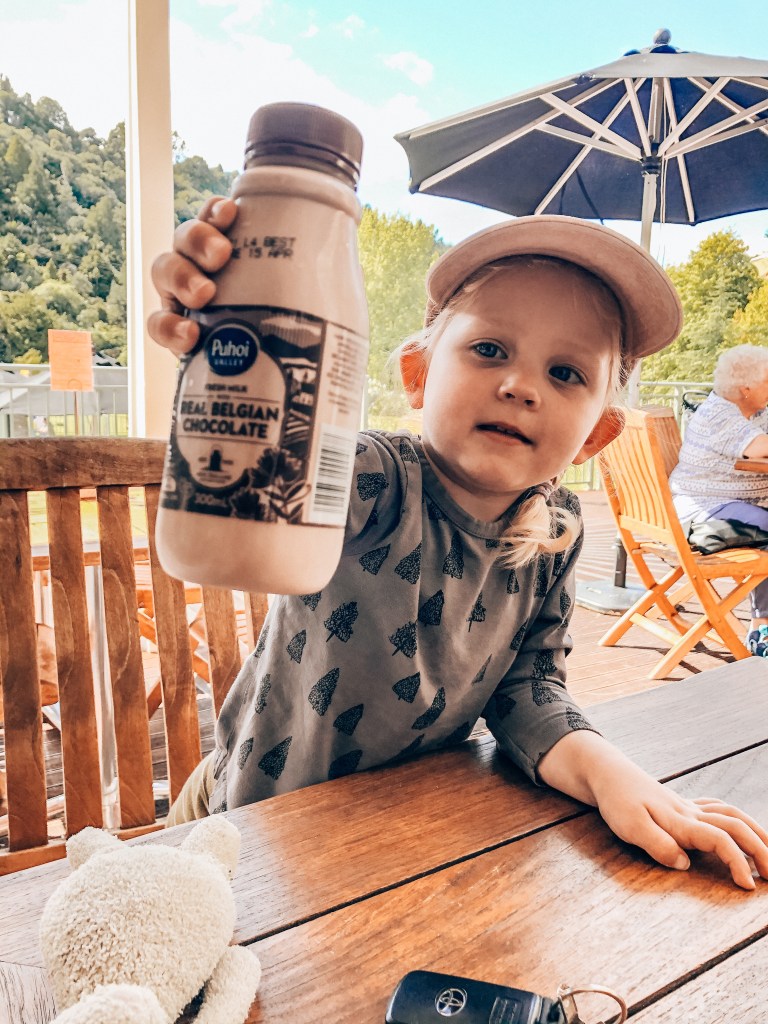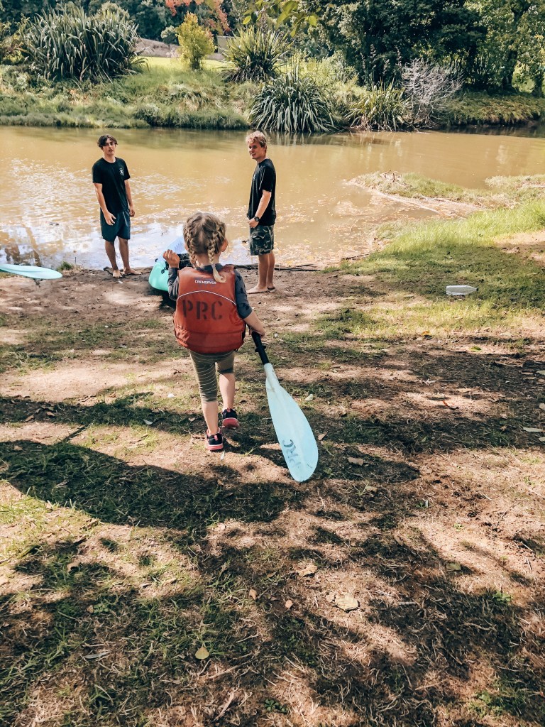 We pushed on to Puhoi, to make up for the stop that we didn’t get to make on the way up, and that worked out well – we managed to nab a table (it was crazy busy) and had a yummy lunch, each with at least one kind of delicious cheese, of course. They also have a great playground, so we made a brief stop there before deciding the sun was too much. We had noticed a river canoe and kayak place on the main drag on the way through – the kayaks weren’t see-through, and you definitely couldn’t see anything in this water anyway, but we had a lot of fun paddling up the river through the valley – Jessie even got her own wee paddle to be part of it. We did get the kayak beached at one point, but we won’t talk about that. We also got absolutely soaked, so afterwards we stood on the main road and got changed into fresh clothes beside the car… not a lot of traffic, fortunately.