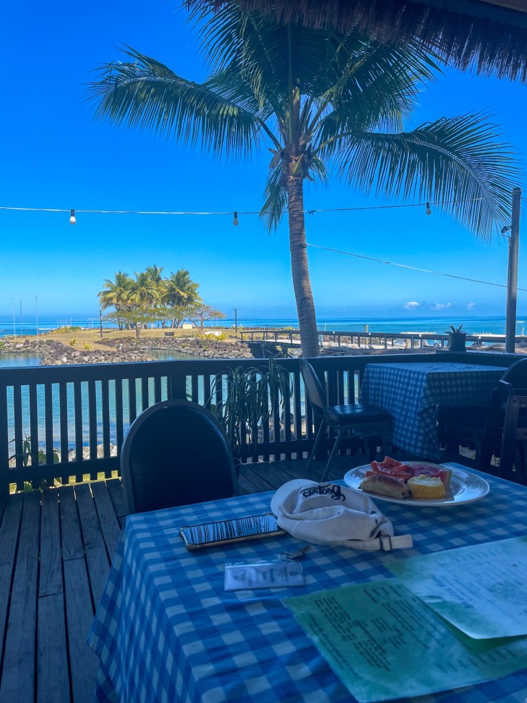 We eventually wandered down to the resort for brekkie, which offered a continental buffet or a cooked breakfast. I happily had the continental with delicious pineapple, watermelon, and pastries, of course. It’s a lovely spot out on the deck, overlooking the “Left Foot” that First Landing is known for and where the wedding was held the previous night.