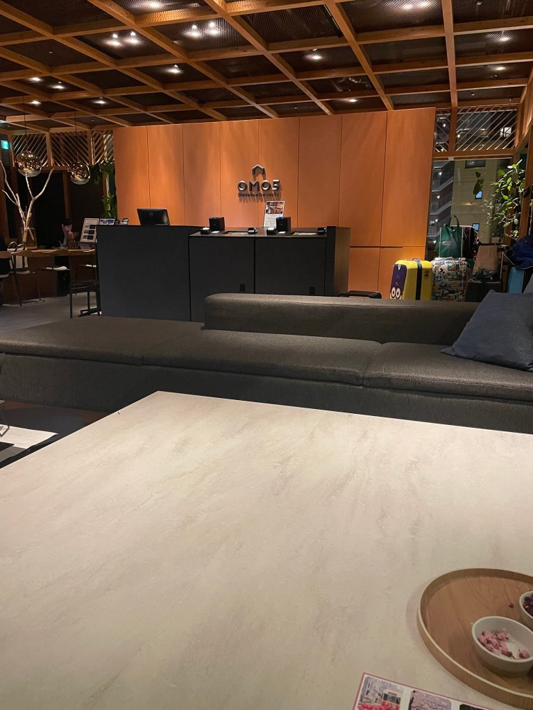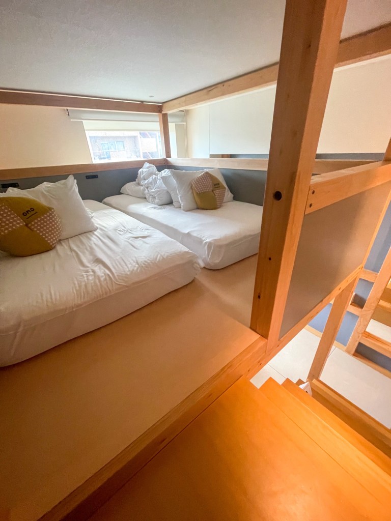 Back at OMO5, we checked into our cleverly designed room—compact, but brilliantly thought out. Loft beds, hidden storage, and choose-your-own amenities at reception, including PJs. One quirky note: both hotels so far have given us printed breakfast vouchers for each day, per person. Japan is all about the precision… and the paperwork.