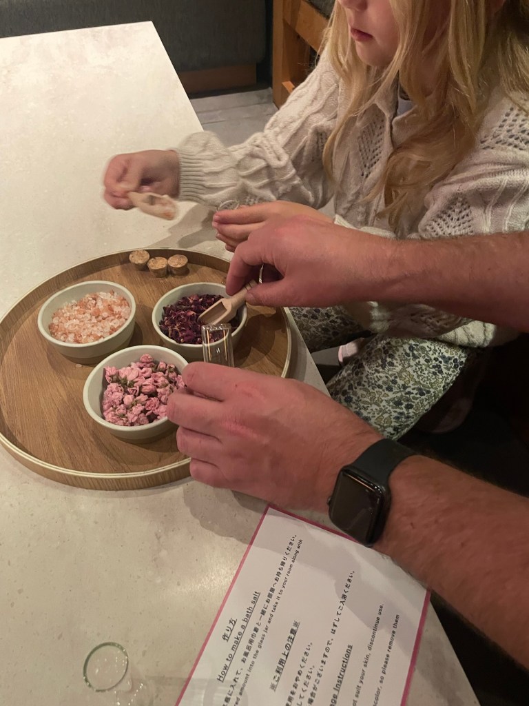 We wrapped up the night with a quick 7/11 run (those grape-flavoured ice cream things are a must) and a little craft session at the hotel—OMO5 runs free activities, and we made sakura and rose bath salts before bed. It was the perfect end to our first full day.