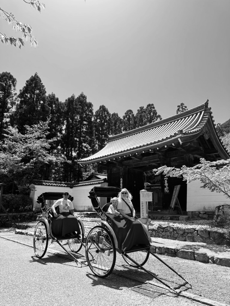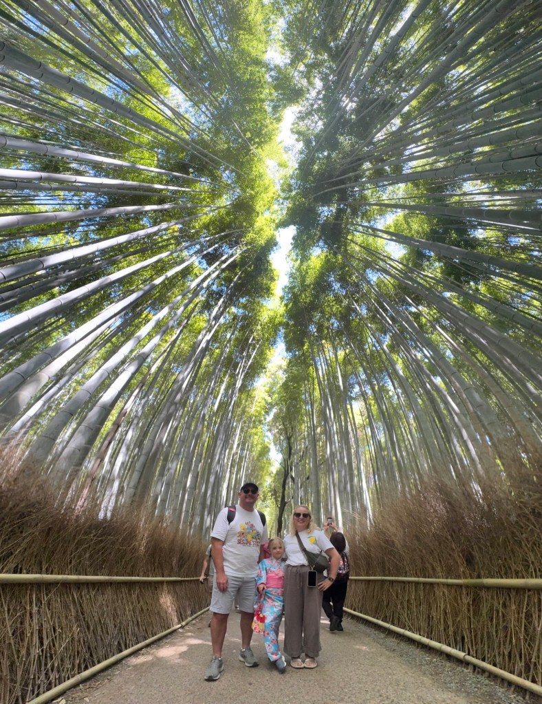 We began with the bamboo forest. After grabbing a few photos amongst the crowd, we noticed the rickshaws nearby and decided to enquire. While pricey, the ride included a personal guide and photographer, and gave us a break from navigating the crowd. Best decision! Jessie and I rode with Ren, and Craig with Masa – both of whom were incredibly fit and knowledgeable. They took us to quieter photo spots, gave us fun facts (did you know each ring on a bamboo stalk represents just ONE day of growth? They reach full height in just two months!), and chatted with us throughout the journey. When Craig asked about summer, Masa replied with total honesty: “I hate summer.” Same, Masa. Same.