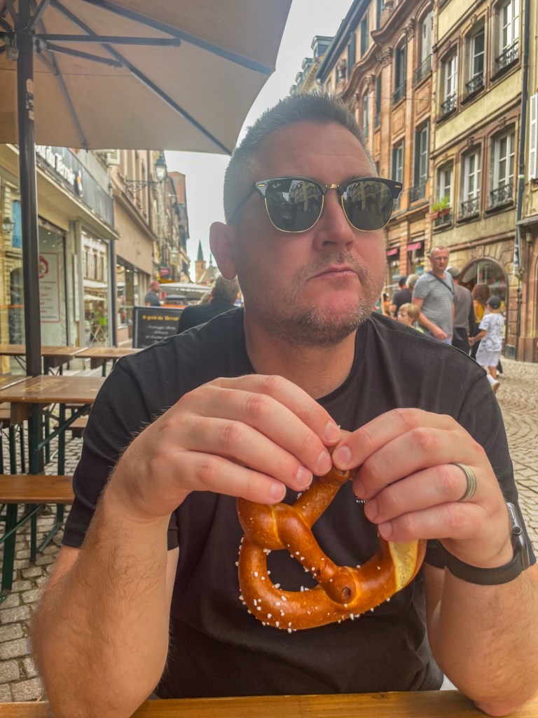 We stopped at a local winstub (traditional Alsatian tavern) for a Bretzel (pretzel), a beer, and some excellent people-watching – always one of our favourite travel pastimes.