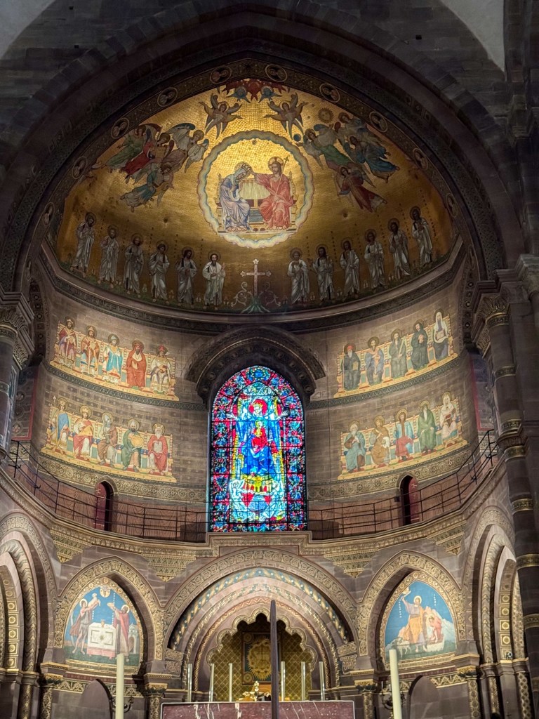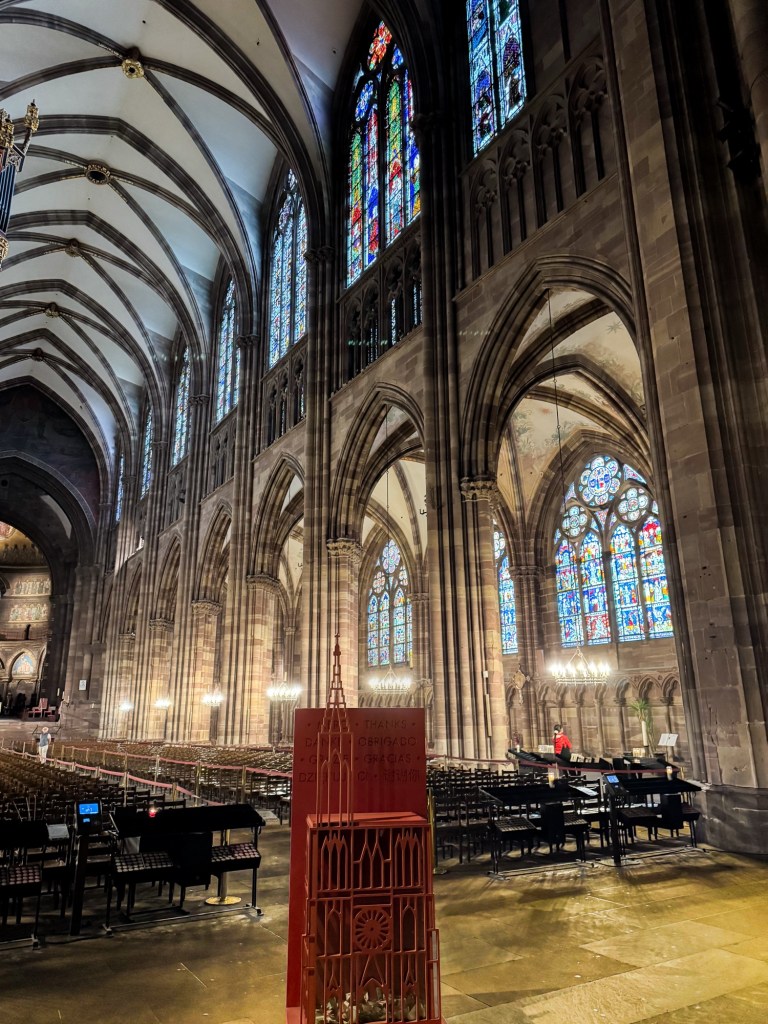 When we arrived at the cathedral, we realised it was open (it hadn’t been yesterday afternoon), so we wandered inside. It was dark and beautiful, with stunning leadlight windows casting coloured light across the stone. Magic.