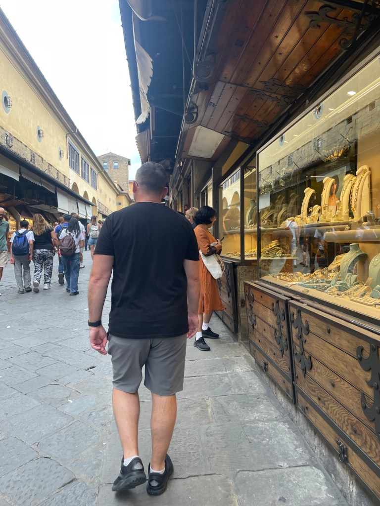 After all that grandeur, I found my version of a religious experience: shopping for linens. I picked up a few gorgeous pieces (my absolute fave), along with some tees. The markets in Florence are an experience in themselves – colourful, busy, and a bit theatrical.