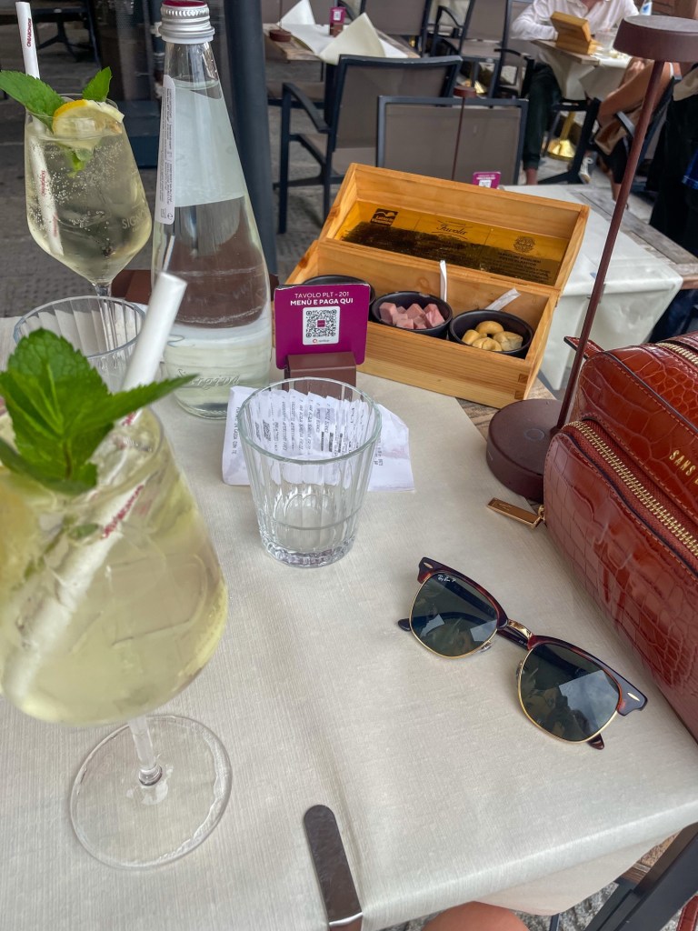 We crossed back over Ponte Vecchio and stopped for an aperitif – white spritzes and mortadella with cheese. Heavenly.