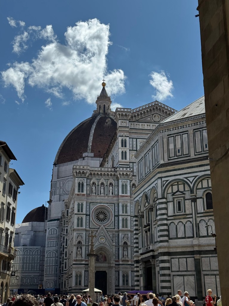 We packed a lot into the morning, including a visit to the Florence Cathedral (Duomo) – incredibly stunning. We’ll be climbing it on Monday morning (wish us luck). Right next to it is the Baptistery, with its famous bronze doors – just beautiful.