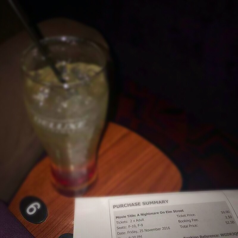 Well, it has been almost exactly eight months since E date. I know, it’s terrible – E couldn’t be topped and I really struggled with F. Fishing was a possibility, but also not that easy to arrange when you don’t have the gears or the know-how. Anyway, I was scrolling on Facebook a few weeks ago and saw an event page for A Nightmare on Elm Street, playing at Deluxe Cinema at The Tannery. Perfect – F for Freddy Krueger! So I booked us in for the screening and the “Freddy Krueger cocktail”.